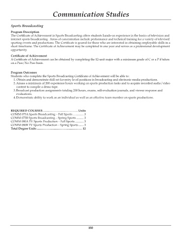 The Certificate of Achievement in Sports Broadcasting offers students hands-on experience in the basics of television and