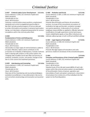CJ 057 Criminal Justice Career Development 3.0 Units CJ 060 Probation and Parole 3.0 Units