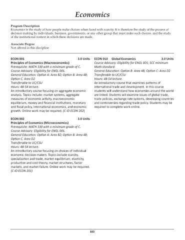 ECON 001 3.0 Units ECON 010 Global Economics 3.0 Units