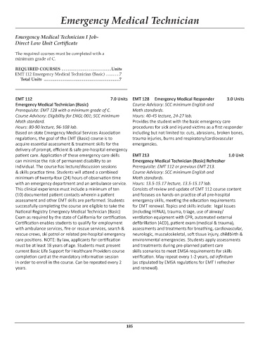 EMT 112 7.0 Units EMT 128 Emergency Medical Responder 3.0 Units