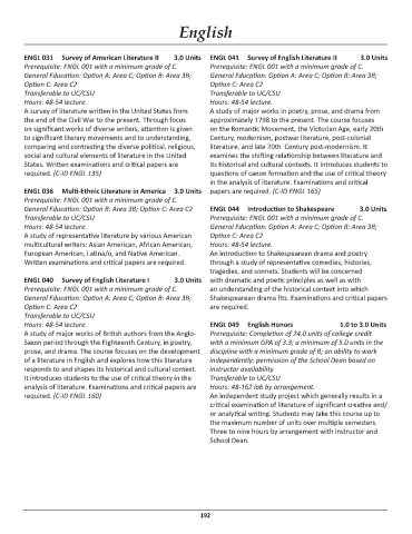ENGL 031 Survey of American Literature II 3.0 Units ENGL 041 Survey of English Literature II 3.0 Units