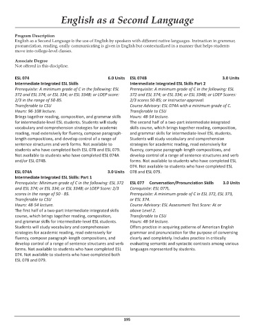and grammar skills for intermediate-level ESL students. Hours: 48-54 lecture.