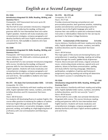 ESL 373 ESL Basic Oral Communication Skills 3.0 Units Introductory Integrated ESL Skills: Reading, Writing and