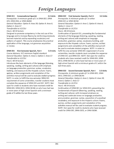 SPAN 011 Conversational Spanish 3.0 Units SPAN 032 First Semester Spanish, Part II 3.0 Units