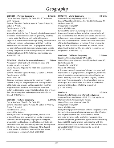 GEOG 001 Physical Geography 3.0 Units GEOG 004 World Geography 3.0 Units