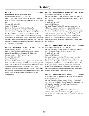 HIST 018 3.0 Units HIST 029 African American History Since 1865 3.0 Units