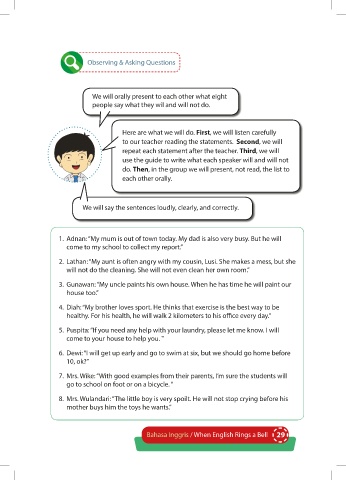 4. Diah: “My brother loves sport. He thinks that exercise is the best way to be