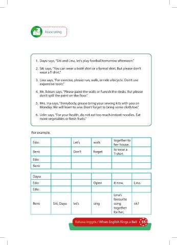 1. Dayu says, “Siti and Lina, let’s play football tomorrow afternoon.”