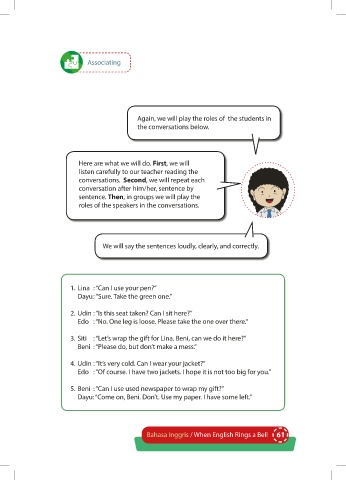 3. Siti : “Let’s wrap the gift for Lina. Beni, can we do it here?”