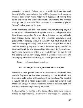 TRAVEL DAY, ST. IGNACE, MI to YOUNGSTOWN, OH