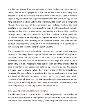 is in Bhutan. Missing from the ambiance is noise! No honking horns, no loud