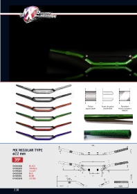 302-346 Racing TECH_RACING 16/04/2018 15:30 Page37 Finition Bouts de guidon Aluminium aspect sablé chanfreinés Haute résistance HR6061 MX REGULAR TYPE ø22 mm 39 € 049900B BLACK 049900O ORANGE 049900S SILVER 049900R RED 049900L BLUE 049900N GREEN 338