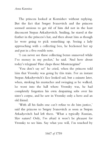 sister’s corpse, and he saw in Vronsky only a hero and an