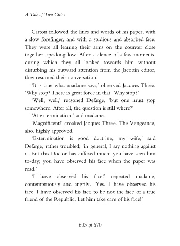 ‘Well, well,’ reasoned Defarge, ‘but one must stop