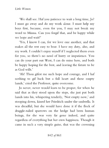 ‘We shall see. Haf you patience to wait a long time, Jo?