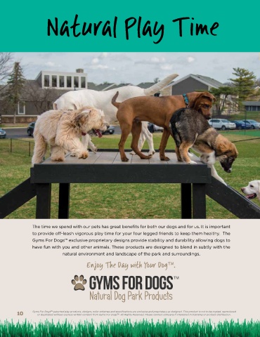 10 Gyms For Dogs TM patented play products, designs, color schemes and specifications are exclusive and proprietary as designed. This product is not to be copied, reproduced