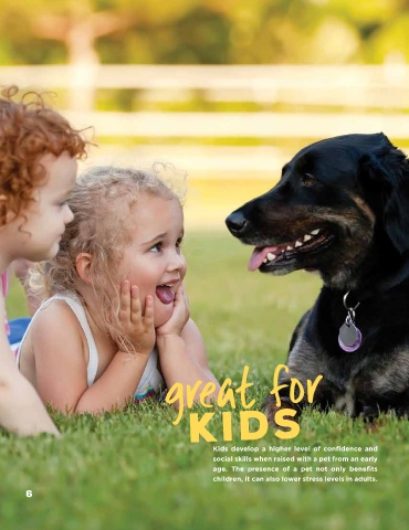great for KIDS Kids develop a higher level of confidence and social skills when raised with a pet from an early age. The presence of a pet not only benefits children, it can also lower stress levels in adults. 6