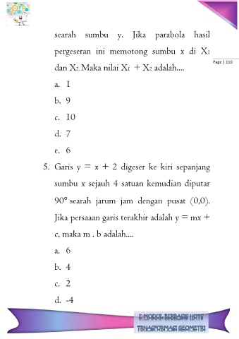 5. Garis y = x + 2 digeser ke kiri sepanjang