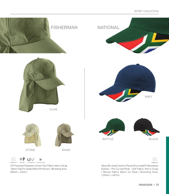| Back Flap For Added Neck Protection | Branding Area: Eyelets | Pre-Curved Peak | Self Fabric Velcro Strap
