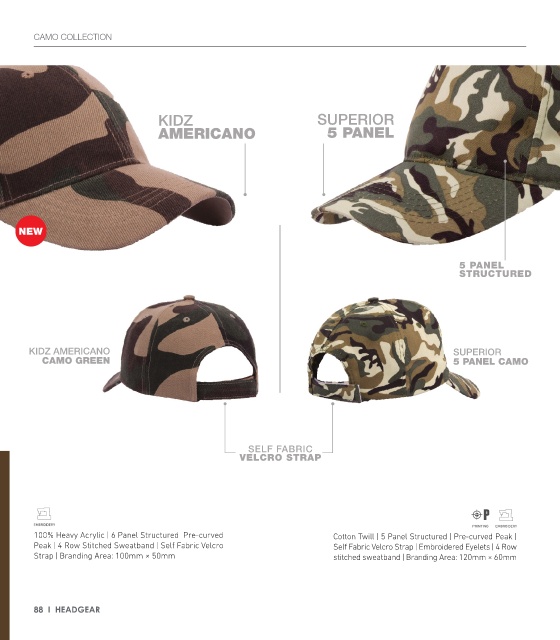 100% Heavy Acrylic | 6 Panel Structured Pre-curved Cotton Twill | 5 Panel Structured | Pre-curved Peak |