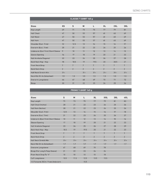 sIZING ChArTs