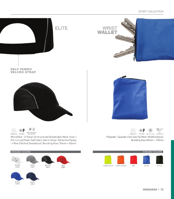 Pre-Curved Peak | Self Fabric Velcro Strap | Reflective Piping Branding Area: 80mm × 100mm