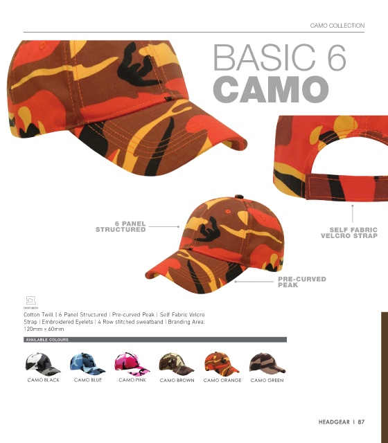 CAMO BLACK CAMO BLUE CAMO PINK CAMO BROWN CAMO ORANGE CAMO GREEN