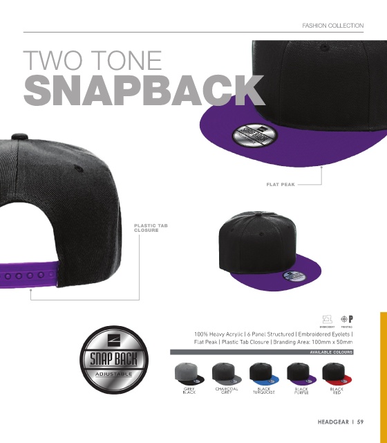 Flat Peak | Plastic Tab Closure | Branding Area: 100mm x 50mm