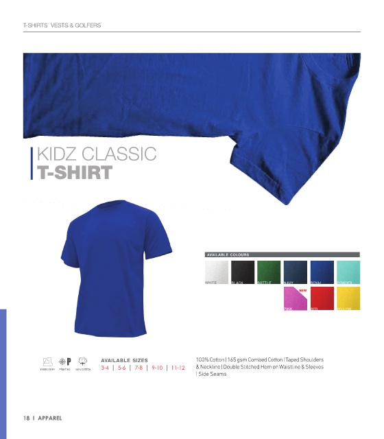 available sizes 100% Cotton | 165 gsm Combed Cotton | Taped Shoulders