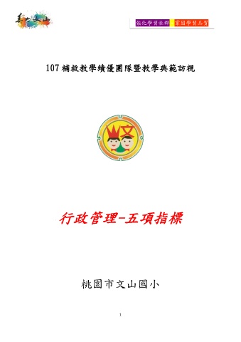 強化學習社群˙鞏固學習品質 107 補救教學績優團隊暨教學典範訪視 行政管理-五項指標 桃園市文山國小 1