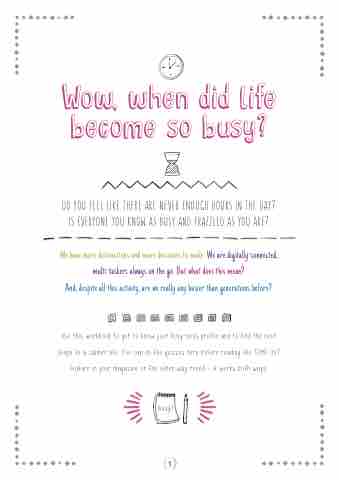Use this workbook to get to know your busy-ness profile and to find the next steps to a calmer life. You can do the quizzes here before reading the TIME OUT feature in your magazine or the other way round - it works both ways.