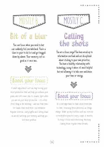 You You can can focus when you need to but can can suddenly feel overwhelmed You’re a a a a a slave to to your to to do do list and get bogged down by admin Your memory isn’t as as as good as as it once was A small adjustment such as ring-fencing your most productive time will help you you achieve your goals and still leave time to unwind Spot when you you are at your most productive - it’s often first thing in in in the morning - and use that time for tasks that need most concentration Regular exercise early nights and cutting down on alcohol will help help your memory and help help you you feel more positive MOSTLY C