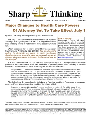 The July 1, 2011 amendments to the Health Care Power of Effective July 1, P.A. 96-1195 makes