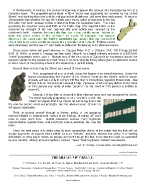 (N.D. Ill. 2010), in which a Chicago law firm sued Citibank for alleged untimely dishonor of a $372,640