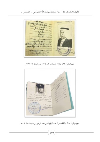 تأليف :الشريف علي بن سعود بن عبد الله الصرامي الحسني صورة رقم ( ) 74بطاقة عمل للعم عبدالرحمن بن سليمان عام 1392ه صورة رقم ( ) 75بطاقة عمل لـ عبد الرؤوف بن عبد الرحمن بن سليمان عام 1408ه 777