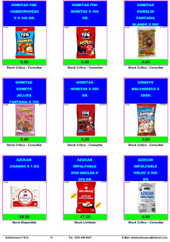 Distribuidora P.R.O. 83 Tel.: 0351-458-8927 E-Mail: distribuidorapro@hotmail.com