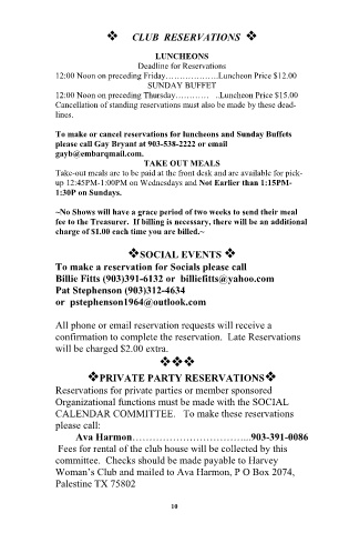 To make or cancel reservations for luncheons and Sunday Buffets Mary Beth George