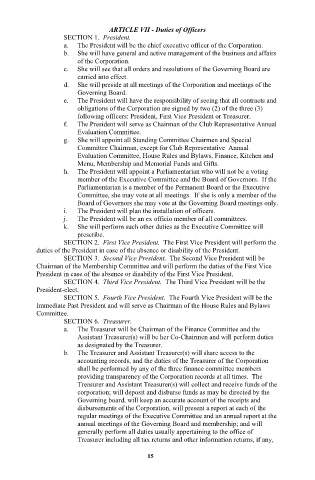 fee is used for Clubhouse maintenance. SECTION 1. President.