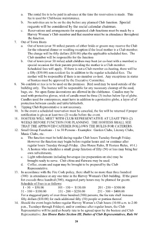 14. Should the event begin before regular Harvey Woman’s Club hours (10:00 a.m. to 2:00 regular meetings of the Executive Committee and an annual report at the