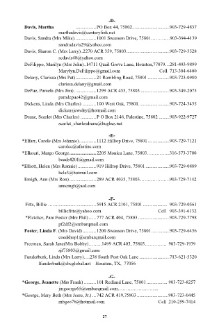 2018 Davis, Martha ................. PO Box 44, 75802 ............................... 903-729-4837