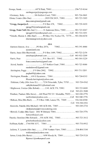 Glenn, Connie (Mrs Dan) ……………….2829 FM 2419 , 75801 .............. 903-723-3103