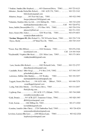 STANDING COMMITTEES * Jenkins, Sandra (Mrs Stephen) ........... 603 Glenwood Drive, 75801 ............. 903-723-0123