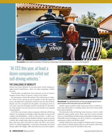 Florida, called “The Villages,” o ers driverless taxi service for residents. transfer to public transit for the bulk of their trip.