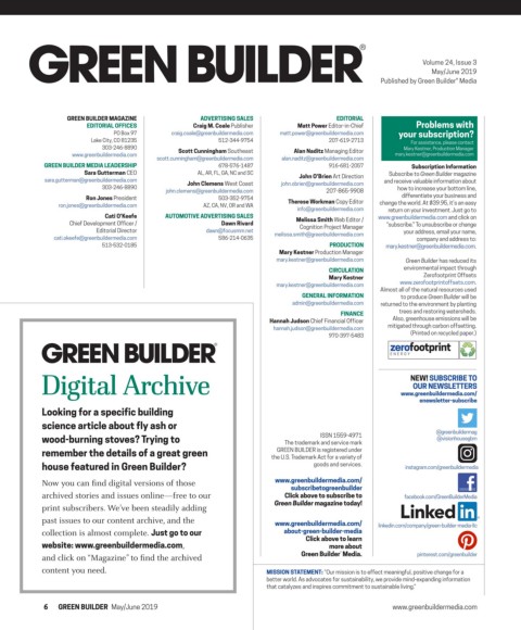 archived stories and issues online—free to our              Click above to subscribe to    facebook.com/GreenBuilderMedia