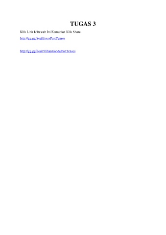 TUGAS 3 Klik Link Dibawah Ini Kemudian Klik Share. http://gg.gg/SoalEssayPastTenses http://gg.gg/SoalPilihanGandaPastTenses