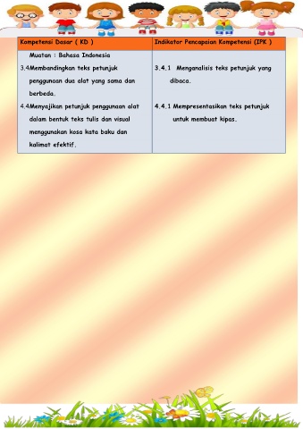 3.4 Membandingkan teks petunjuk 3.4.1 Menganalisis teks petunjuk yang