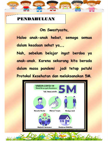 PENDAHULUAN Om Swastyastu, Haloo anak-anak hebat, semoga semua dalam keadaan sehat ya,,, Nah, sebelum belajar ingat berdoa ya anak-anak. Karena sekarang kita berada dalam masa pandemi jadi tetap patuhi Protokol Kesehatan dan melaksanakan 5M.