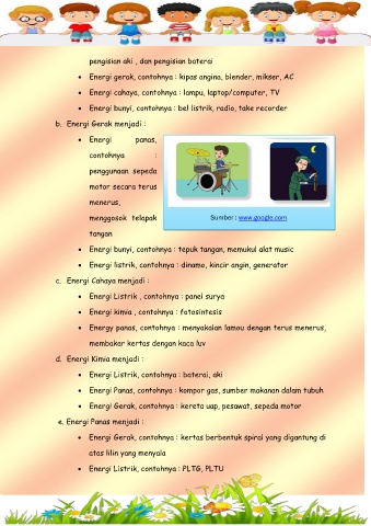 Energi bunyi, contohnya : tepuk tangan, memukul alat music