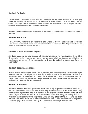 Any Local affiliated with the Organization which fails to pay its per capita tax for a period of (3)