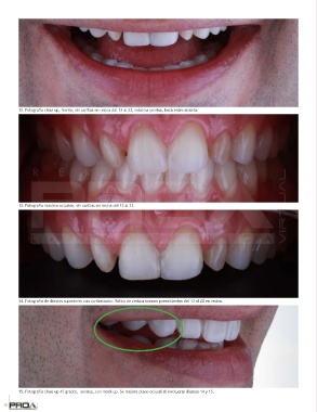 12. Fotografía close up, frente, sin carillas en resina del 13 al 23, máxima sonrisa, boca entre abierta.